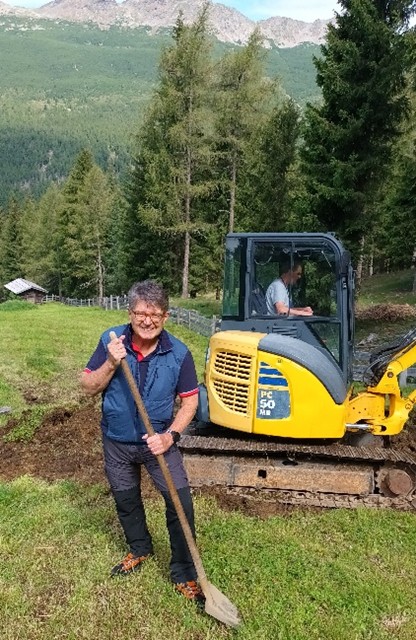 Ein wesentlicher Schwerpunkt lag auf dem Umgang mit den klimatischen Veränderungen. Die steilen Wiesen litten zunehmend unter Erosion, vor allem die Hochweiden. Zusammen mit der Familie half ich dabei, die Flächen zu sichern, Wege zu befestigen und die Wasserläufe so zu gestalten, dass das Erdreich nicht weiter weggespült wird. Der Bau einer Drainage und einer neuen Brunnenfassung war durchaus schweißtreibend, jedoch umso erfüllender, als das Wasser wieder gleichmäßig floss.